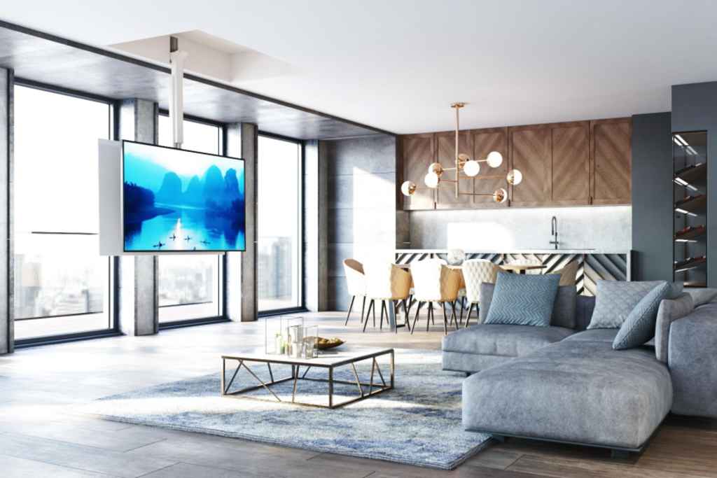 Italian manufacturer Maior builds silent, motorised TV lift systems including fully concealed ceiling mounted systems, flush-mounted ceiling models, fixed telescopic ceiling-mounted systems, floor and furniture TV lifts.