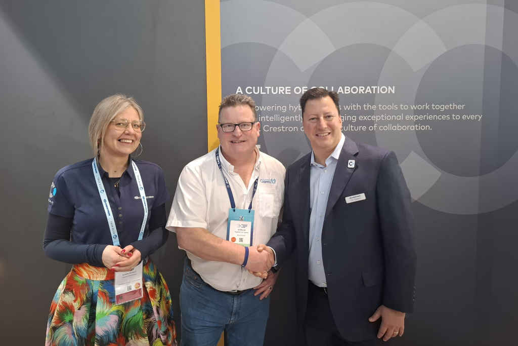 Main image from left to right: Annelies Kampert (vice president and general manager at Crestron Europe), Ian Morrish and Dan Feldstein (president and CEO at Crestron Electronics).
